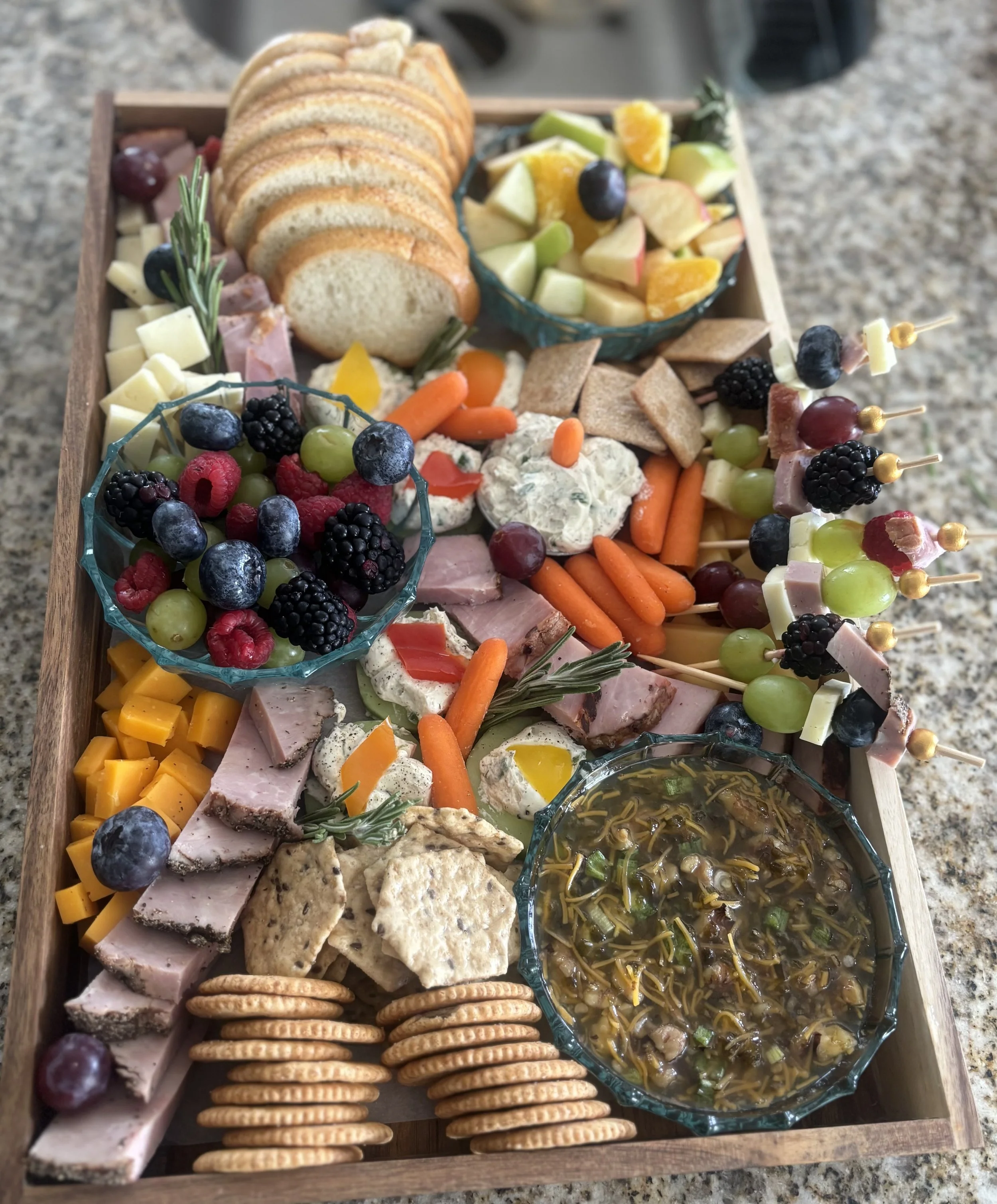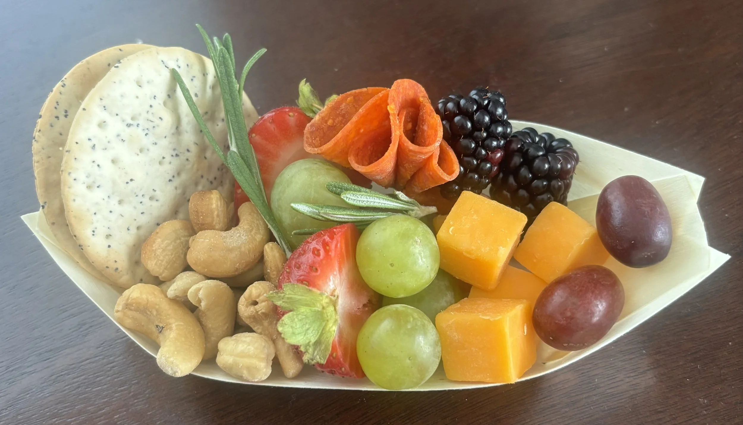 $20/person (includes meat, cheese, fruit, dipping sauce, crackers, and customized cookie for the occasion)